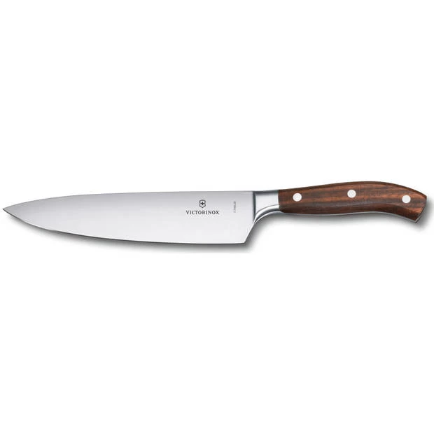 De Victorinox Grand-Maitre Rosewood serie is het beste van het beste van Victorinox. Het lemmet, krop en handvat zijn volledig gesmeed uit één stuk roestvrij staal (X50CrMoV15). Doordat het staal volledig in het handvat doorloopt is het mes perfect in evenwicht. De rozenhouten handgrepen geven deze messen een eigentijds en luxe uitstraling. Een sieraad voor elke keuken.
