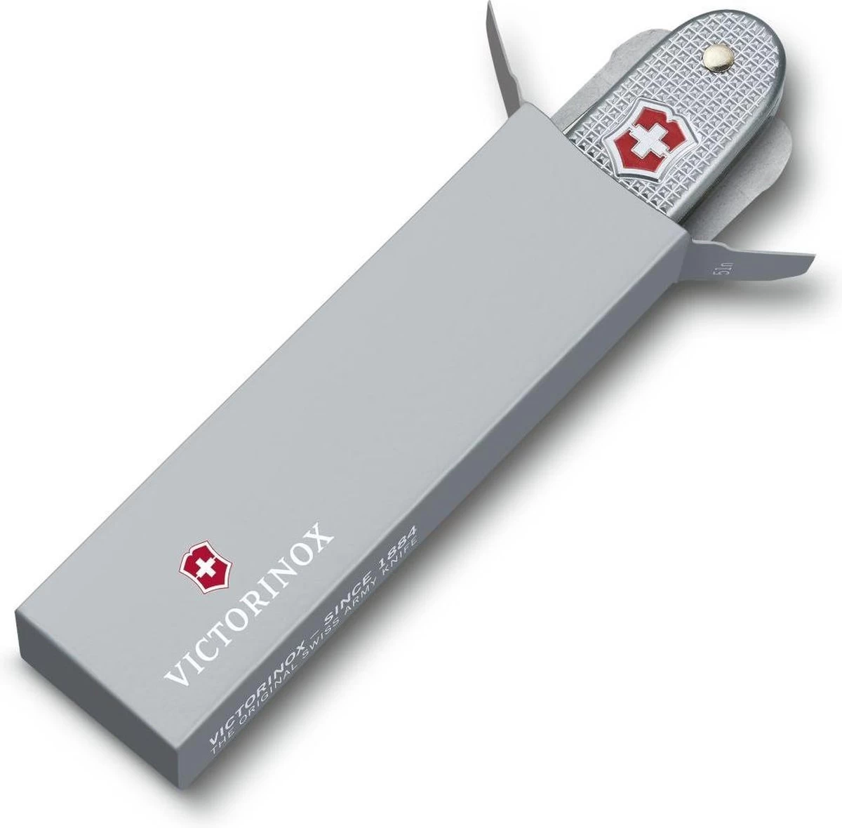Victorinox Original Swiss Army Pioneer X zakmes met schalen van zilver Alox met reliëf en Zwitsers kruis. Alle tools zijn van roestvrij staal. Dit zakmes van 93 mm heeft de volgende 9 functies: groot lemmet, schaar, steekpriem, blikopener met kleine schroevendraaier, flesopener met schroevendraaier en draadstripper, sleutelring. Gemaakt met Zwitserse precisie en vakkundigheid, zoals je mag verwachten van de makers van het originele “Swiss Army Knife”. Levenslange garantie. In doosje. Victorinox: Victorinox staat voor meer dan een eeuw traditie en ervaring. In 1884 begon de messensmid Karl Elsener een eigen messenmakerij in het dorpje Ibach in het hart van Zwitserland. Enkele jaren later ontwierp hij “The Original Swiss Army Knife”, dat inmiddels wereldwijd symbool staat voor kwaliteit, functionaliteit en Zwitsers innovatief talent. Victorinox geeft levenslang garantie op alle materiaal en constructiefouten. Betrouwbaarheid en perfectie tot in detail: een Victorinox is een echte compagnon voor het leven.