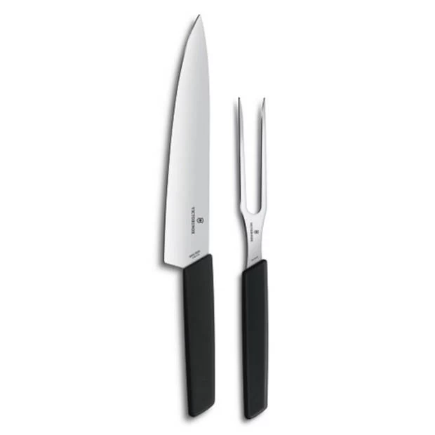 Met deze Victorinox Swiss Modern 2-delige messenset ben je als echte vleesliefhebben gelijk klaar. De set bestaat uit een vlijmscherp vleesmes met een lemmet van 22cm en een bijbehorende vleesvork van 15cm. Zo snijd je met gemak ieder stuk vlees.
