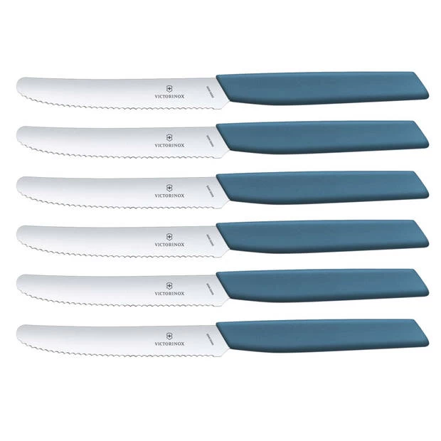 - Het bekende Victorinox mes in een modern jasje: het Swiss Modern blauwe tomatenmes. Deze multifunctionele tomatenmessen zijn onmisbaar in je keuken!
