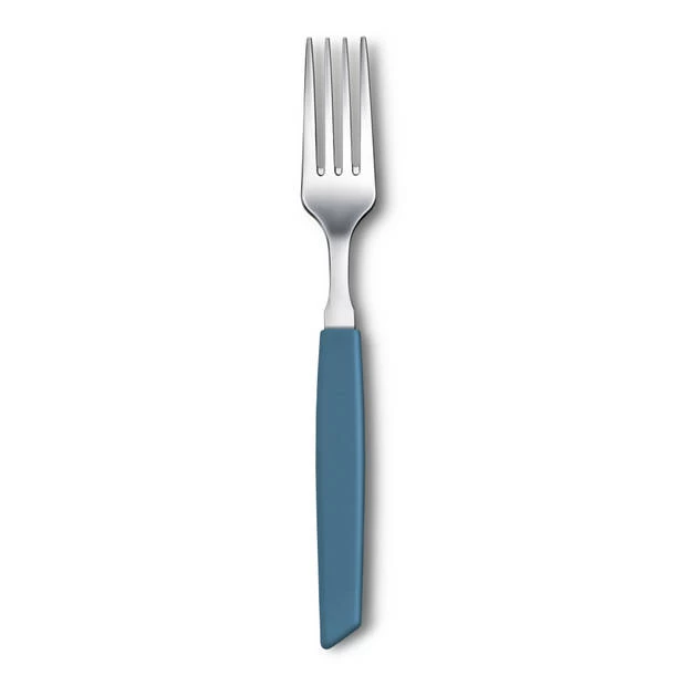 De Victorinox Swiss Modern vork met blauw heft. Met deze vorken creëer je een moderne casual aankleding aan tafel. De vorken zijn duurzaam en van hoge kwaliteit. De Swiss Modern serie staat bekend om het vrij rechte ergonomische handvat. Het roestvrij staal is slijtvast en de vorken zijn er in verschillende vernieuwde, moderne kleuren. Deze vork is perfect voor alledaags gebruik! Wordt geleverd als set van 6 stuks.