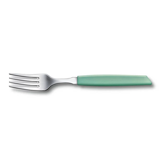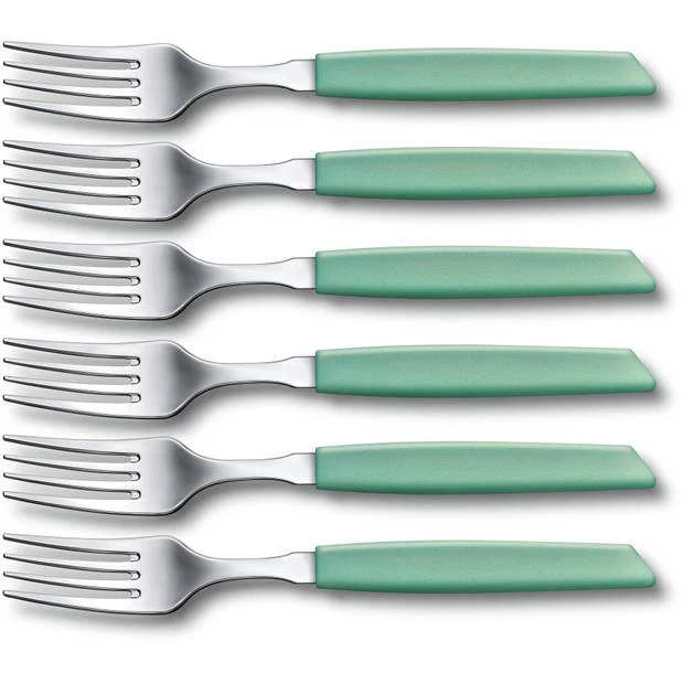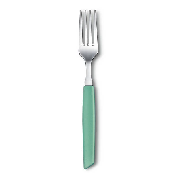 De Victorinox Swiss Modern vork met mintgroen heft. Met deze vorken creëer je een moderne casual aankleding aan tafel. De vorken zijn duurzaam en van hoge kwaliteit. De Swiss Modern serie staat bekend om het vrij rechte ergonomische handvat. Het roestvrij staal is slijtvast en de vorken zijn er in verschillende vernieuwde, moderne kleuren. Deze vork is perfect voor alledaags gebruik! Wordt geleverd als set van 6 stuks.