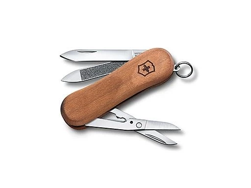 Victorinox zakmes EvoWood 81 5 functies 58 mm blister – De Victorinox EvoWood 81 is een van de meest compacte, maar zeer functionele, Zwitserse zakmessen. Met zijn 5 verschillende functies kan hij perfect thuis gebruikt worden. Alle tools zijn van roestvrij staal en het handvat is van walnotenhout met Zwitsers kruis. Deze multitool heeft een lengte van slechts 58 mm. Met 5 functies: lemmet, nagelvijl met nagelreiniger, schaartje met karteling en een sleutelring. Gemaakt met Zwitserse precisie en vakkundigheid, zoals je mag verwachten van de makers van het originele “Swiss Army Knife”. Levenslange garantie. In blister verpakking.